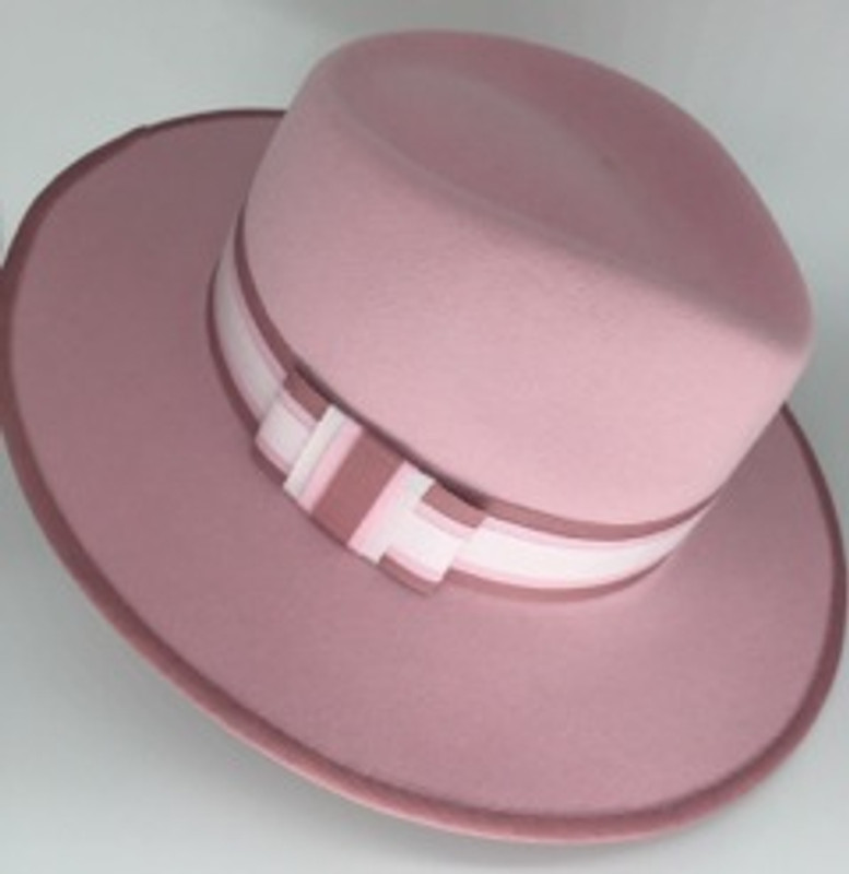 Description Hand stitched and blocked western (Cotswold Cowboy Collection); wired edge covered in petersham ribbon Specifications: - Size: 22 1/2" diameter - Material: Velour felt - Style: Western - Color: Pink UPC: