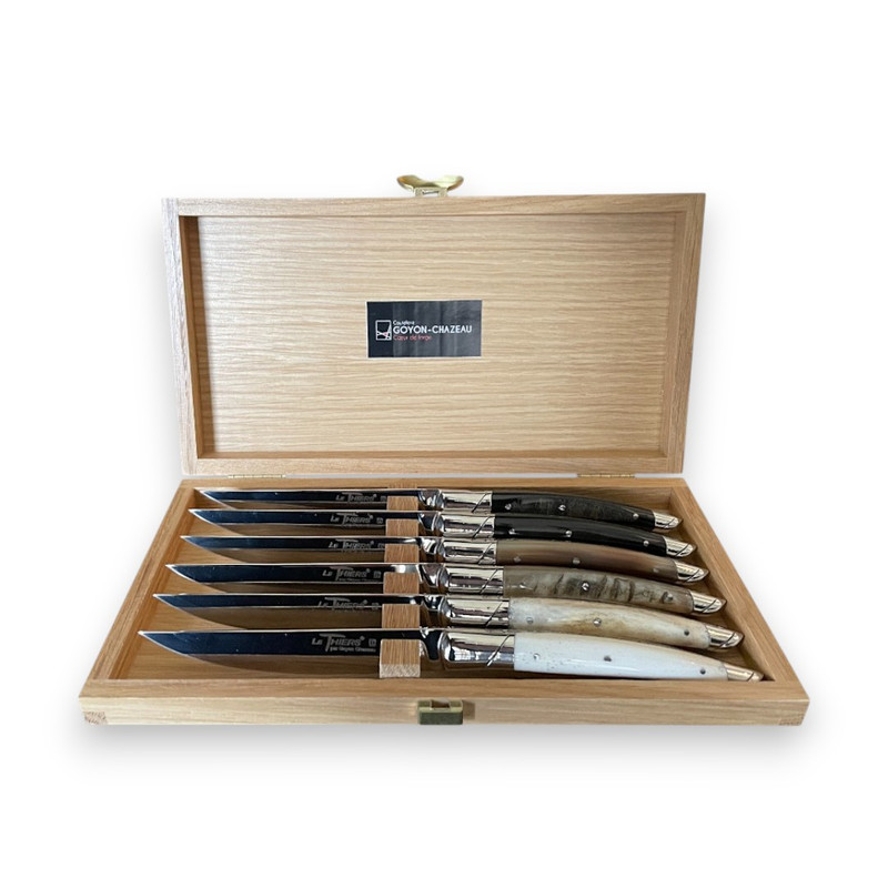 The Thiers Pirou Buffalo, Blonde, Deer, Black Bovine, Red Bovine, Ram Horn is a reliable and light knife which cuts perfectly. It presents an icon on the back of the knife that refers to the "Pirou castle", the oldest monument of the city of Thiers. It is also our brand.