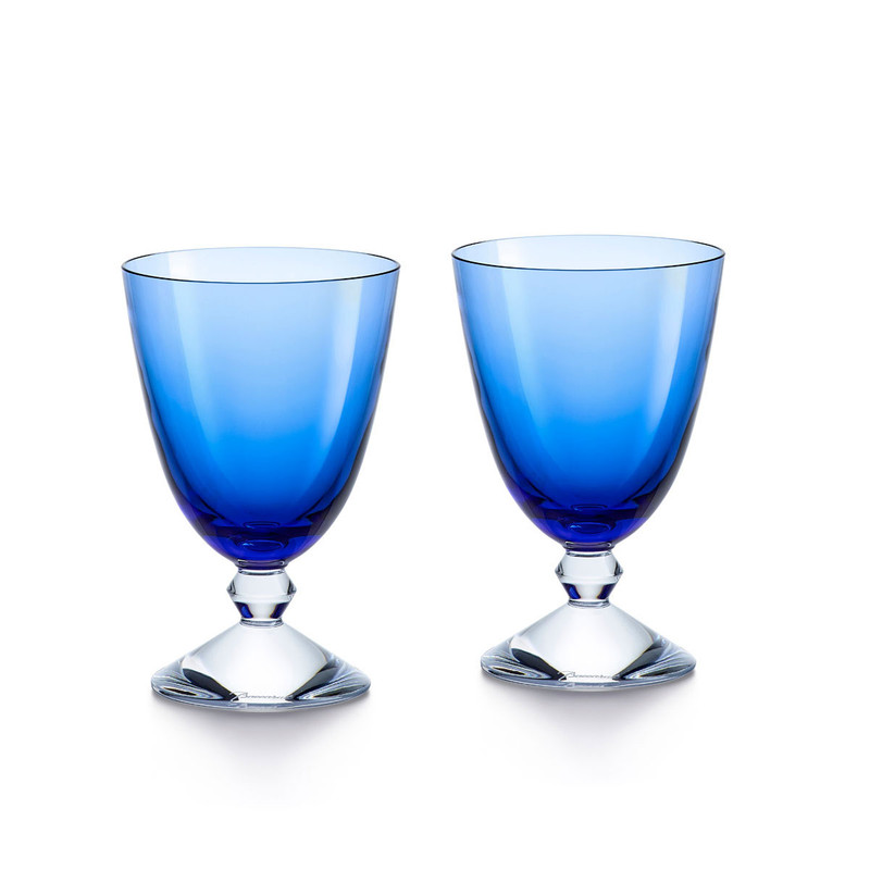 The sculpted stem in the form of entwined berlingots suggests a necklace of superb pearls, reminiscent of the famous Brancusi pillars. Pure and modern lines make these glasses a must for every occasion, adorning dinner tables.